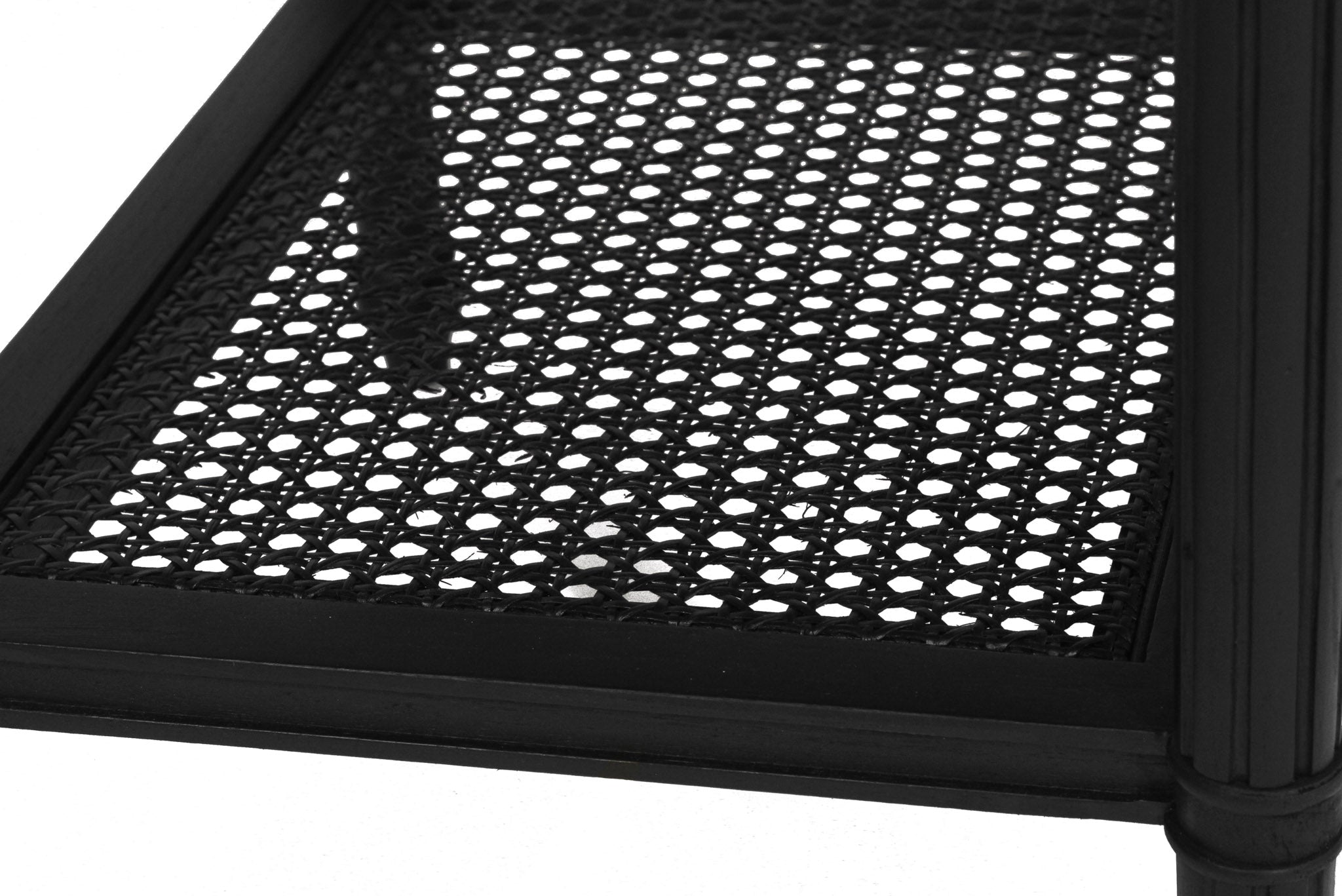The Whitsunday Bedside Table features a classic coastal design with a sleek black finish. Its fluted legs add a refined, elegant touch, while the natural cane shelf introduces a relaxed, holiday-inspired vibe to your bedroom. Crafted from solid kiln-dried hardwood, this table is built to last.